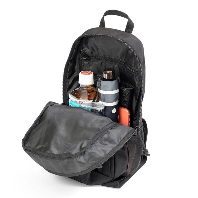 ・しっかりとマチをとったメイン収納部は、外出に必要な荷物の他にドリンクボトルなどもすっきりと収まる、見た目以上の収納力。