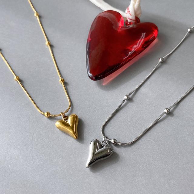 送料無料 ニュアンスハートメタルステンレスネックレス ペンダント サージカルステンレス 金属アレルギー対応 レディース