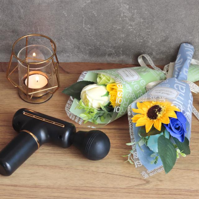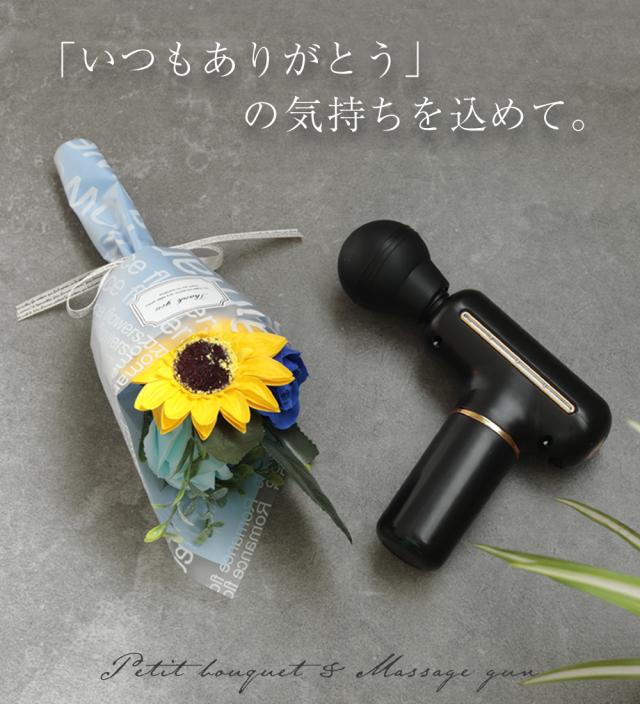 ギフトセット プレゼント ハンディガン ソープフラワー ギフト ブーケ ミニブーケ 花 ひまわり プレゼント マッサージガン 筋膜リリース 誕生日 記念日 定年 退職祝い 肩 首 脚 腰 リフレッシュ 母親 祖母 父親 祖父 友人 女性 男性 ギフトセット 夏ギフト 送料無料