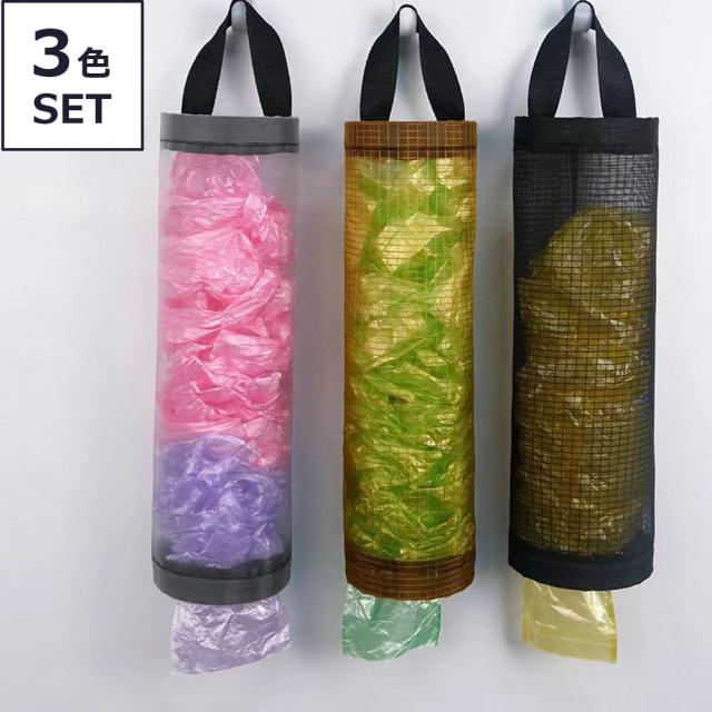 レジ袋 ストッカー クリア ごみ袋入れ 収納 ポリ袋 3色セット 吊り下げ バッグ型 壁掛け キッチン雑貨 便利 グッズ 可愛い 日用品 送料無料