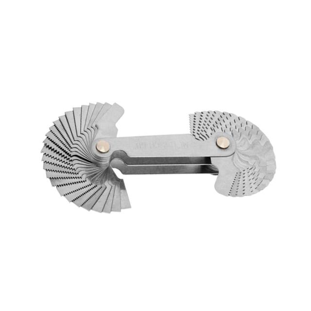 ねじ山のピッチを測定するためのねじ山ピッチゲージ。