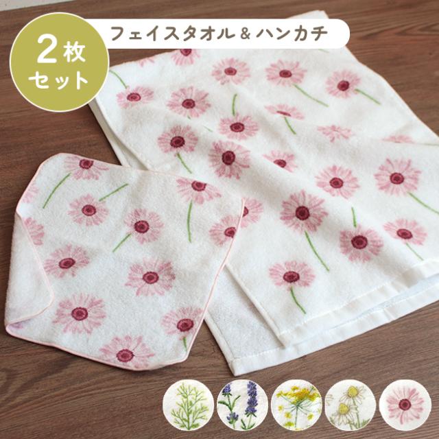 2枚セット フェイスタオル ハンカチ 花柄 ふわふわ 無撚糸 ハンドタオル タオルハンカチ ウォッシュタオル 日本製 綿100% ピンク お花 ナチュラル 草花 ハーブ フラワー 春 プレゼント おしゃれ コットン レディース かわいい 母の日