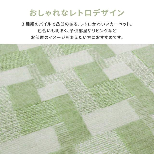 おしゃれなレトロデザイン 抗菌カーペット 江戸間 8畳 352×352【送料無料】 日本製 カーペット ラグ 絨毯 ループパイル カットパイル 防臭 ブラウン ベージュ グリーン グレー ローズ ピンク 正方形 萩原