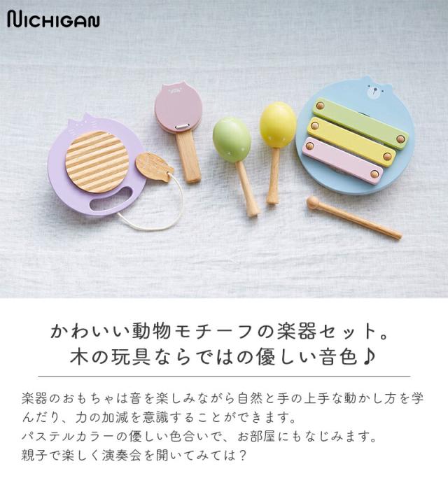 どうぶつたちのおんがくたい 楽器 木製 リトミック カスタネット 木琴 マラカス シロフォン 木のおもちゃ ニチガン お誕生日 知育玩具 3歳 4歳 5歳 玩具 出産祝い クリスマスプレゼント nichigan