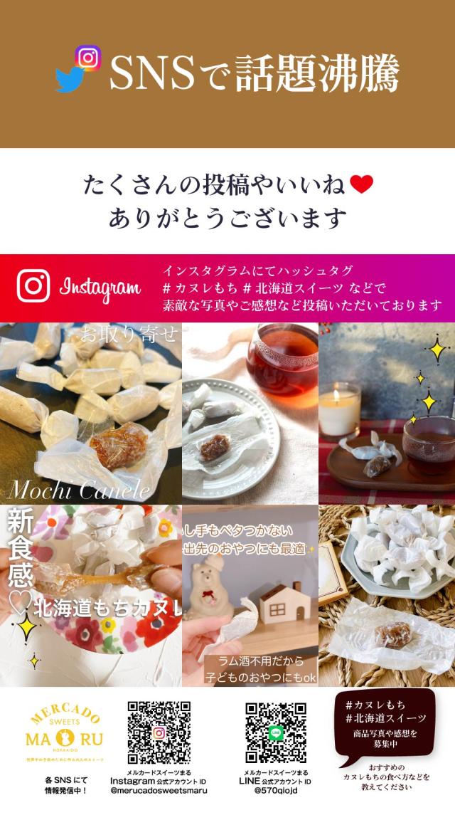 | 商品説明 | 「カヌレ」×「きびだんご」の新スイーツ【北海道カヌレもち】が新登場! 北海道生まれの元祖きびだんご×流行スイーツ「カヌレ」の和と洋の新感覚きびだんごスイーツです。 スイーツショップ「メルカードスイーツまる」で日々製造している大人気の『二段階熟成熟成カヌレ』の風味を、函館で「北海道銘菓きびだんご」を製造している「天狗堂宝船」とのコラボレーションにより実現しました。 きびだんごのモチモチした食感と、カヌレの口の中に広がる洋風の味わいを是非お楽しみください。 こちらはお買い求め頂きやすい「小袋タイプ」になっております。 |
