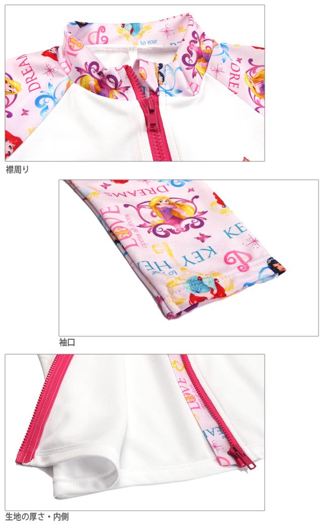 【メール便可】ディズニープリンセス キッズ女の子用長袖ラッシュガード水着 100 110 120 130 白 ピンク ホワイト 子供 No.sw3385