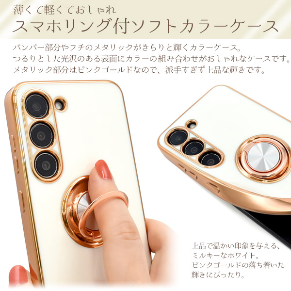 スマホケース Galaxy S23 SC-51D SCG19 スマホリング付き ソフトケース メタリックバンパー 装着簡単 背面保護 お洒落 韓国風 携帯ケース メタリックカラー お洒落 スマートフォンケース スマホカバー 韓国 韓国っぽ シンプル 上品 SoftBank au docomo