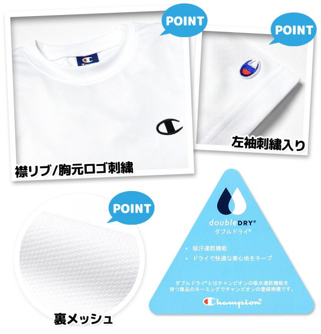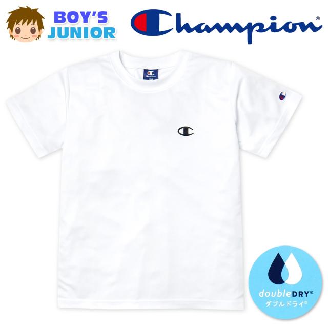 【送料無料】男児 ジュニア 吸汗速乾 半袖 Tシャツ Champion 裏メッシュ 通気性 刺繍 子供服 男の子 td-0640d-wt【メール便対応】