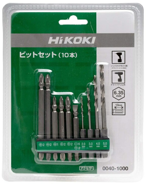 HiKOKI ビットセット (10本) 0040-1000 六角二面幅6.35mm 00401000 ハイコーキ 日立 ネコポス可 在庫