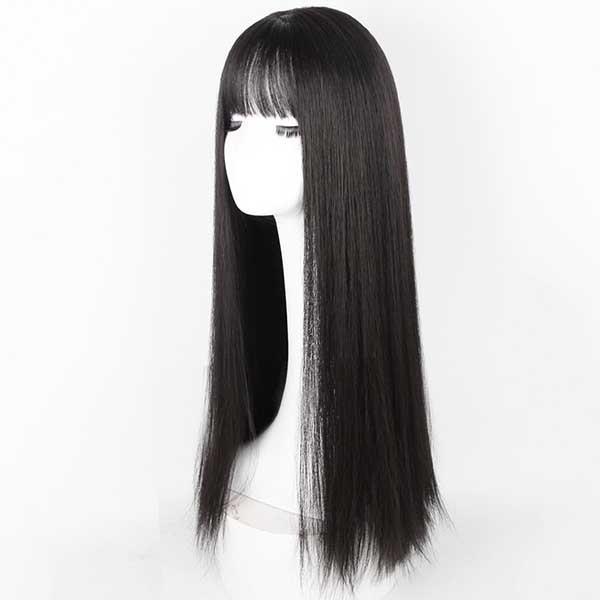 【レビュー投稿で+5%還元】ウィッグ フルウィッグ 長髪 ブラック ロング ストレート ロングウィッグ ぱっつん前髪 前髪あり かつら コスプレ 大人っぽく コスチューム 黒髪 仮装 文化祭 イベント dp006x5