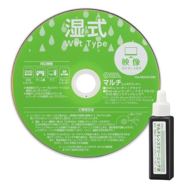 マルチレンズクリーナー DVD再生可能な機種対応 湿式 100回程度使用可能 OHM OA-MDVD-DW
