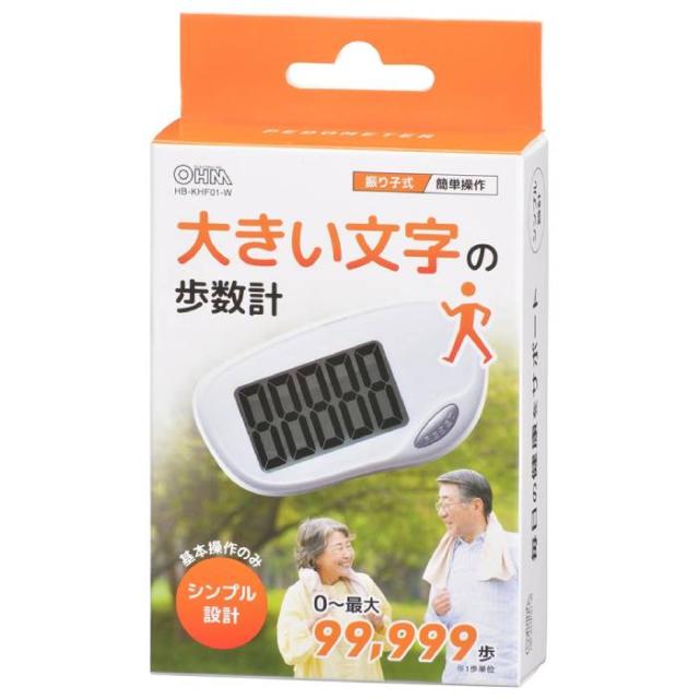 大文字 歩数計 振り子式 LR1130ボタン電池×1個付属 ホワイト OHM HB-KHF01-W