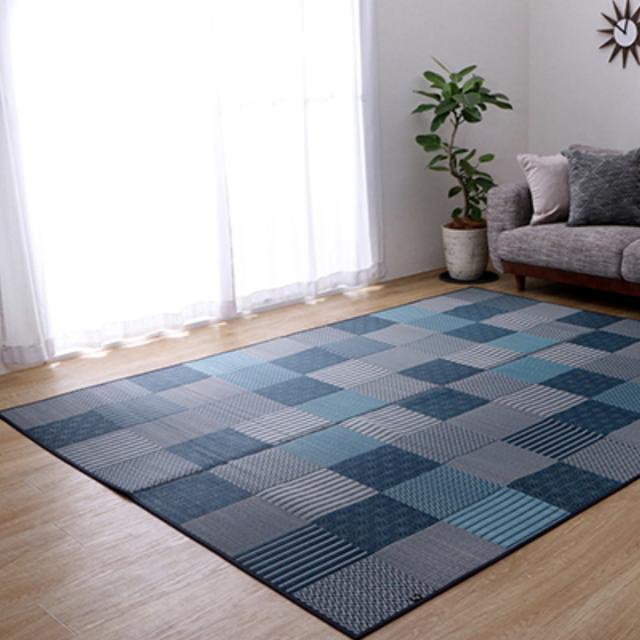 花ござとは染色した「い草」を鮮やかな模様が浮き出るように織り上げたラグマットのことです。花ござの持つ清涼感はじめじめと蒸し暑い日本の夏を涼やかにしてくれます。こちらの商品は希少な国産い草を職人が丹精込めて織りあげており、伝統と新しさを感じる温もりのあるデザインで市松模様が表現されています。
