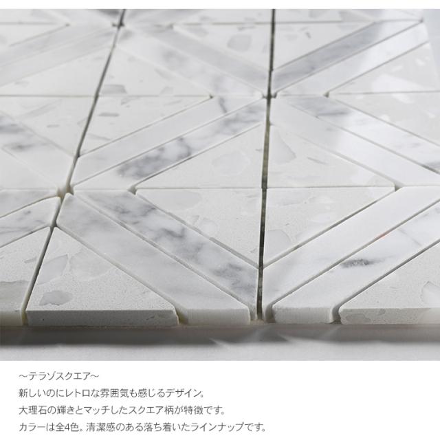 モザイクタイル シート テラゾスクエア (2枚セット) 人造大理石 タイルシール 壁 キッチンタイル カフェ 店舗 インテリア キッチン リビング 寝室 玄関 テーブル 浴室 洗面台 トイレ 石材 DIY 室内 北欧 インテリア