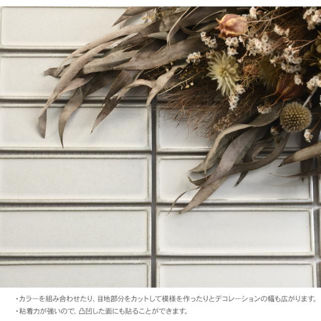 裏面に接着テープが付いているので、裏紙をは剥がすだけですぐに貼れるモザイクタイルシート