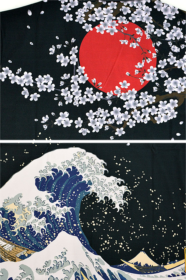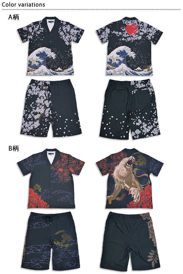 開襟シャツセットアップ 絡繰魂 232854 和柄 和風 アロハシャツ 上下 荒波 桜 龍 虎 オオカミ 狼