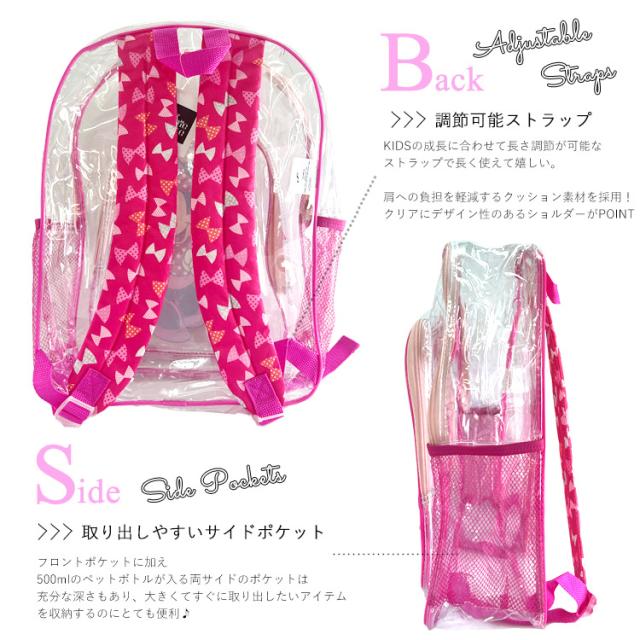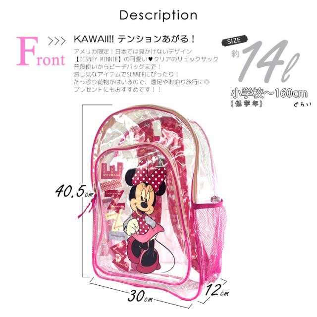 リュックサック ディズニー ミニーマウス クリア Lサイズ 透明 ビーチバッグ クリアリュック ミニーちゃん 大きめ 子供から大人まで キャラクター 通学バッグ