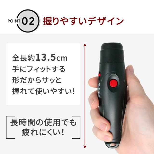 - 3種類の音が出て良いストラップ付きで簡単に使用できるので良い