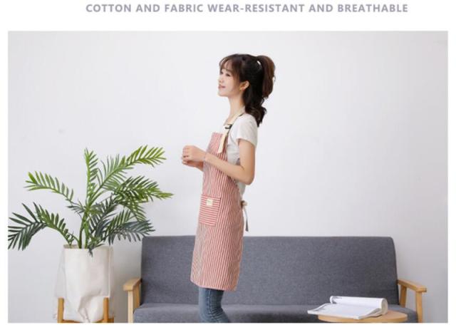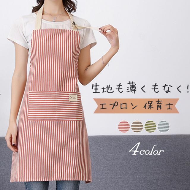 半額セール エプロン ワンピース ストライプ柄 レディース キッチン 保育士 大きいサイズ 調節可 シンプル 料理 おしゃれ ファ