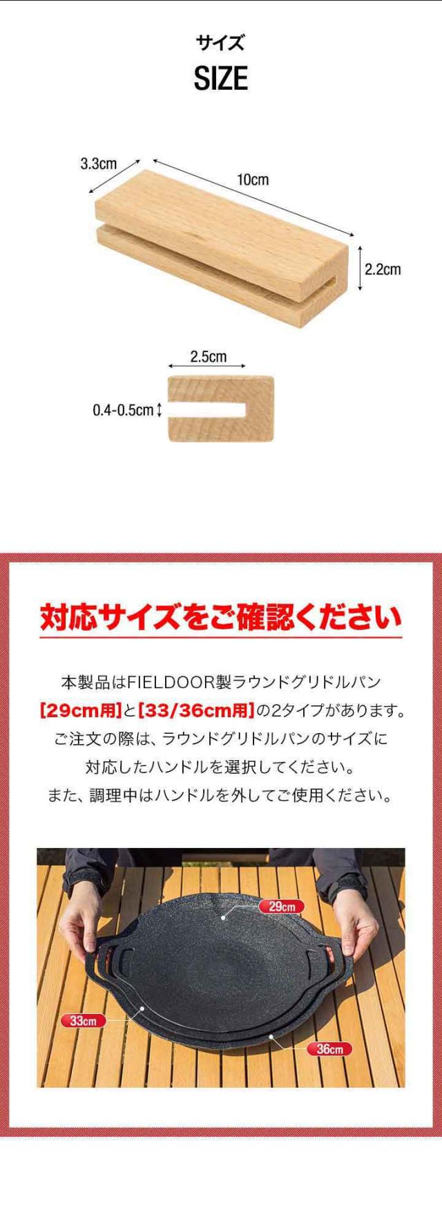 FIELDOOR ラウンドグリドルパン用 木製ハンドル 長さ10cm グリドルパン Sサイズ/直径29cm Mサイズ/直径33cm Lサイズ/直径36cm用 アウトドア キャンプ キャンプ飯 ※ラウンドグリドルパン本体別売 1年保証 送料無料 メール便