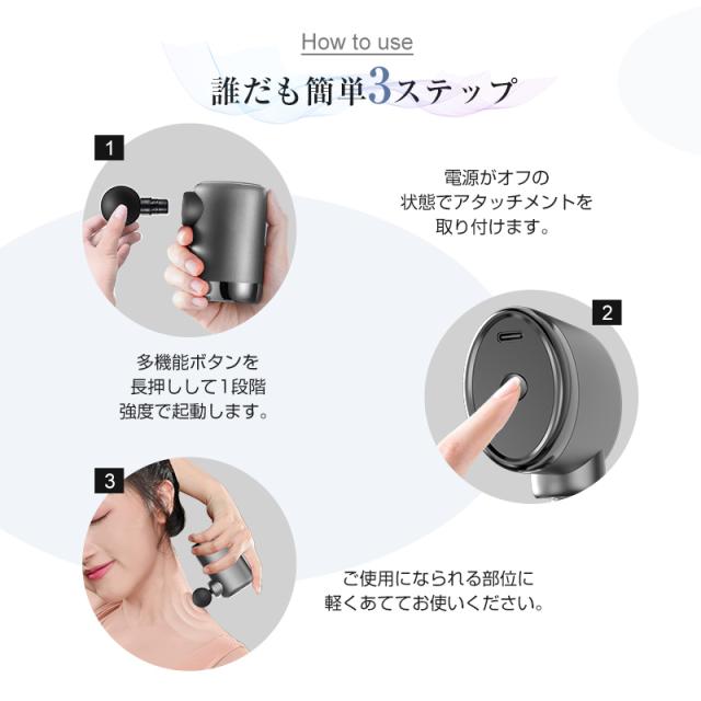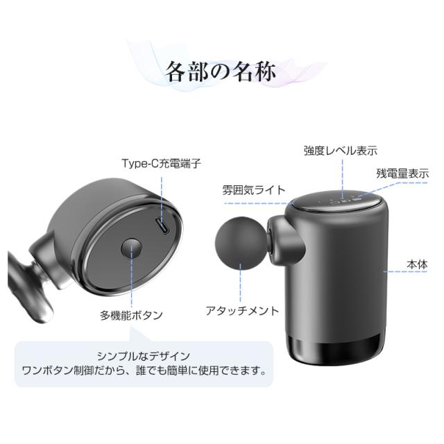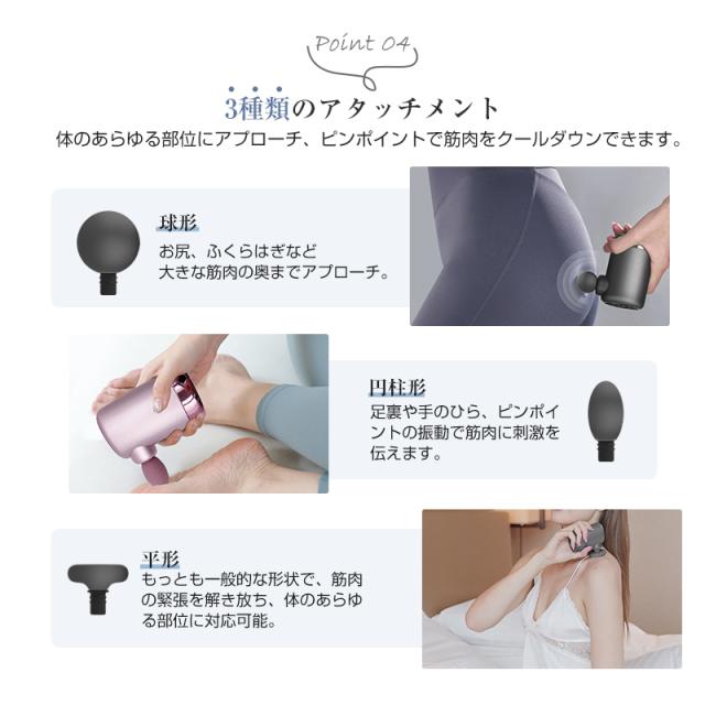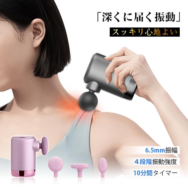 筋膜リリースガン 4段階強度 疲れ緩和 リフレッシュ 筋肉マッサージ 3つアタッチメント 筋膜ガン ハンディガン リラックスグッズ 【PL保険加入済み製品・安心】