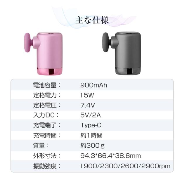 振動強度:4段階(1900・2300・2600・2900rpm/分)