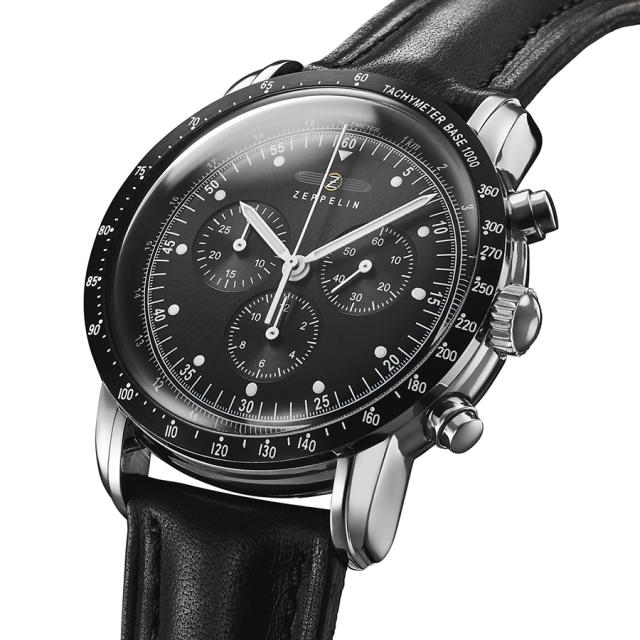 ツェッペリン 100周年記念シリーズ 日本限定モデル 8892-2 メンズ 腕時計 クオーツ クロノグラフ 革ベルト ブラック