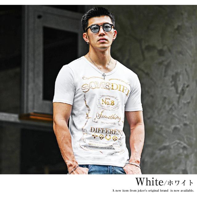 Vネック Tシャツ メンズ 半袖 半袖Tシャツ ブランド Tシャツ ストレッチ 生地 ロゴT カットソー 半袖 白Tシャツ 黒Tシャツ ホワイト ブラック タイト スリム 細身 薄手 ラメ コットン メンズファッション リゾート サーフ系 ちょいワル お兄系 夏服 夏 夏新作 新作