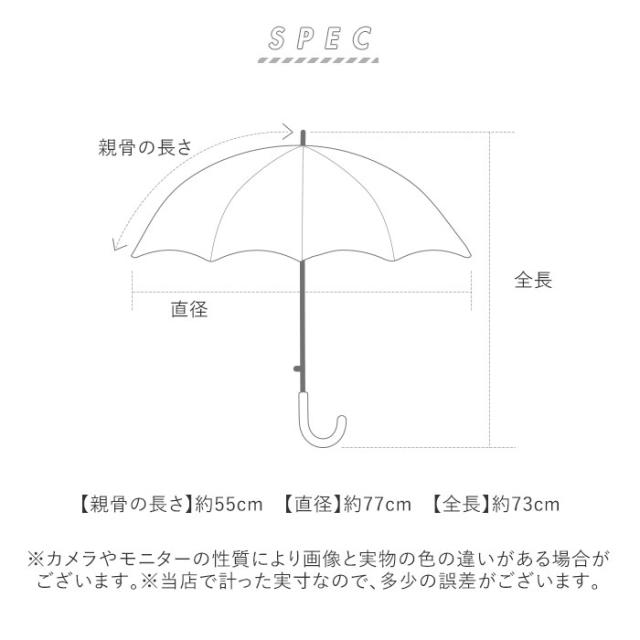 | サイズ | [親骨の長さ]約55cm/[直径]約77cm/[全長]約73cm ※サイズは当店計測の実寸サイズです。実際の商品ならびにメーカー表記サイズとは多少の誤差が生じる場合がございます。あらかじめご了承ください。 |