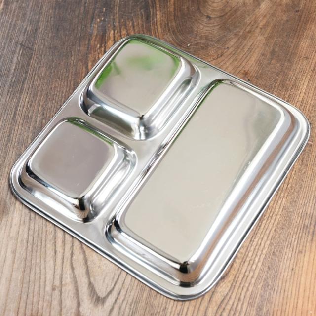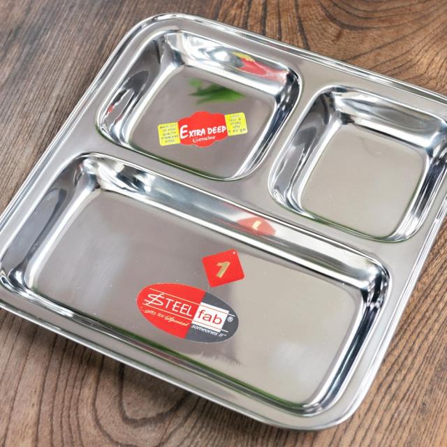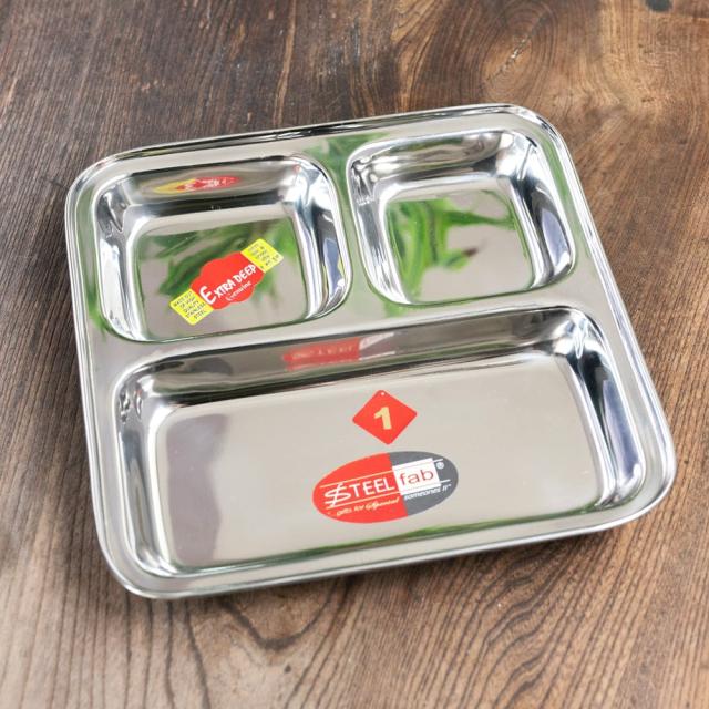 3分割ランチプレート No.1〔約21cm x 約21.3cm〕 深めで沢山入る! / インド料理、インドカレー、カレー 皿、ランチプレート、分割 カレー皿、インドカレー、 インド料理、 ターリー皿、 インドカレー皿、 ステンレスカレー皿、 仕切りプレート、 カレープレート、 インド食器、 エスニック食器、 業務用カレー皿 インド アジアの食材 【インドとアジアン食品・食材
