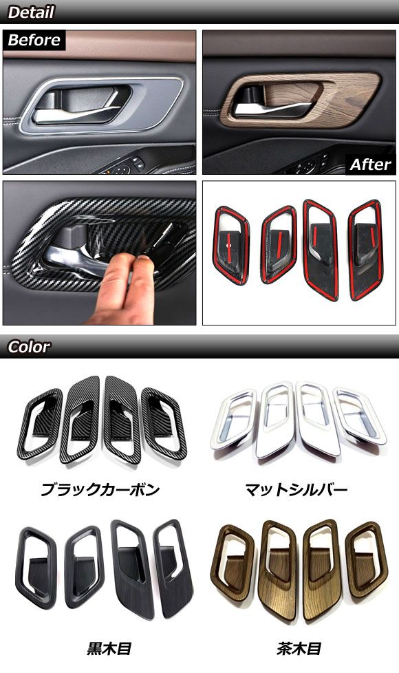 インナードアハンドルカバー 日産 エクストレイル T33系 2022年07月〜 ブラックカーボン ABS製 入数:1セット(4個) AP-IT2907-BKC