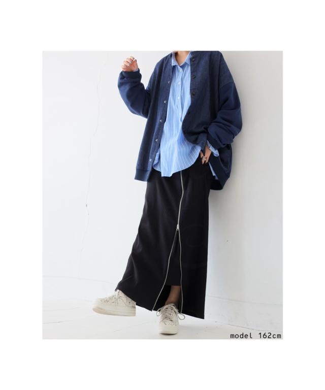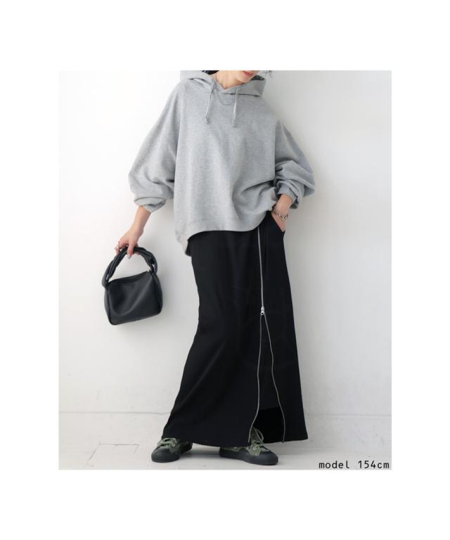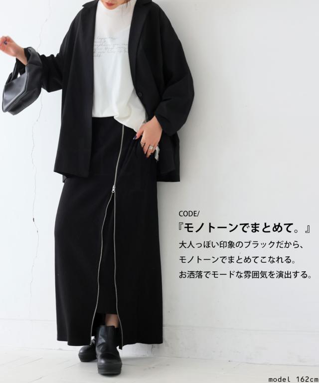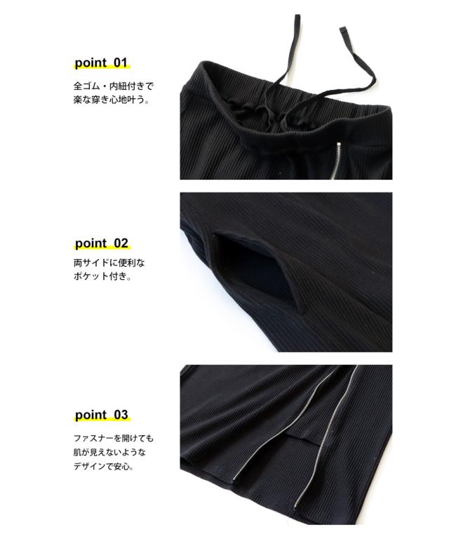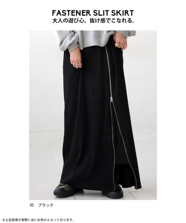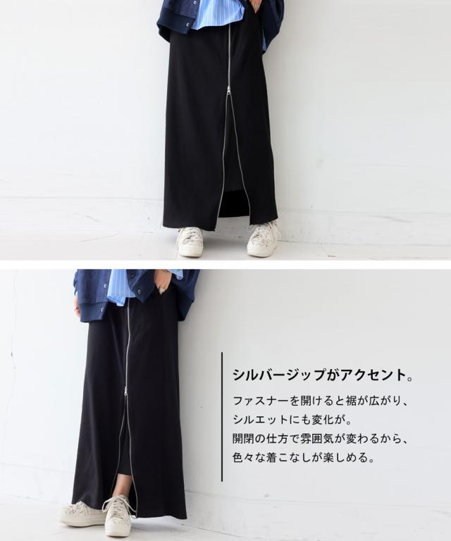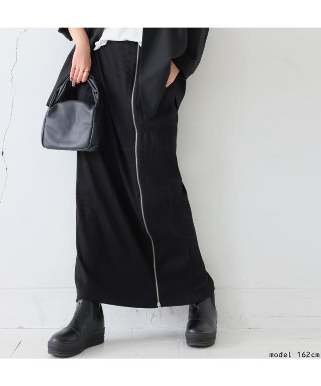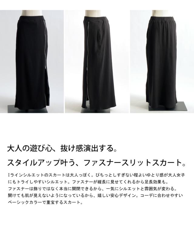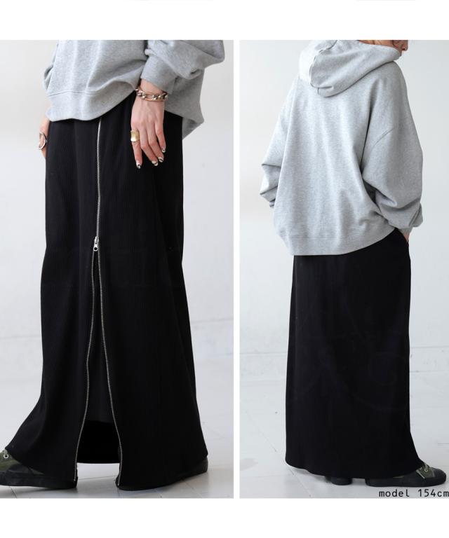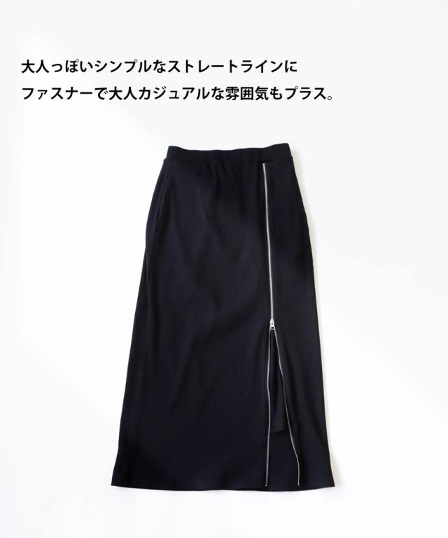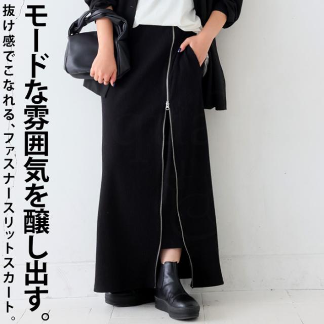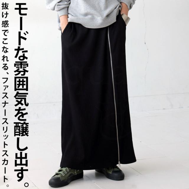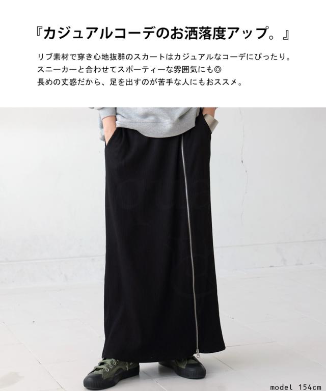 pn-00431 無地 リブ スリット ジップ ファスナー シンプル モード きれいめ タイトスカート ロングスカート タイト Iライン ストレート ゆったり 伸縮 ストレッチ 前フラット