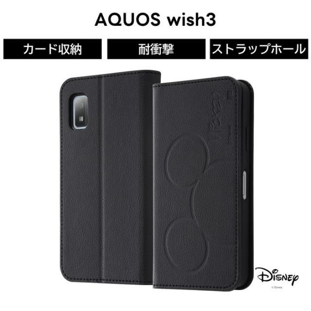 AQUOS wish3 ケース ミッキー 手帳型 シンプル アクオスウィッシュ3 SH 53D A302SH AQUOSwish3 手帳型ケース ソフト ハード スマホケース カード収納 キャラクター かわいい 可愛い