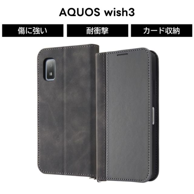 AQUOS wish3 ケース 手帳型 バイカラー ブラック アクオスウィッシュ3 SH-53D A302SH AQUOSwish3 手帳型ケース ソフト ハード スマホケース AQUOSwish3ケース かわいい おしゃれ 耐衝撃 カード収納