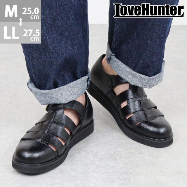 サンダル メンズ ストラップ グルカサンダル 脱げない 2.5cmヒール カジュアル No.1966 25.0-27.5cm ブラック LOVEHUNTER ラブハンター