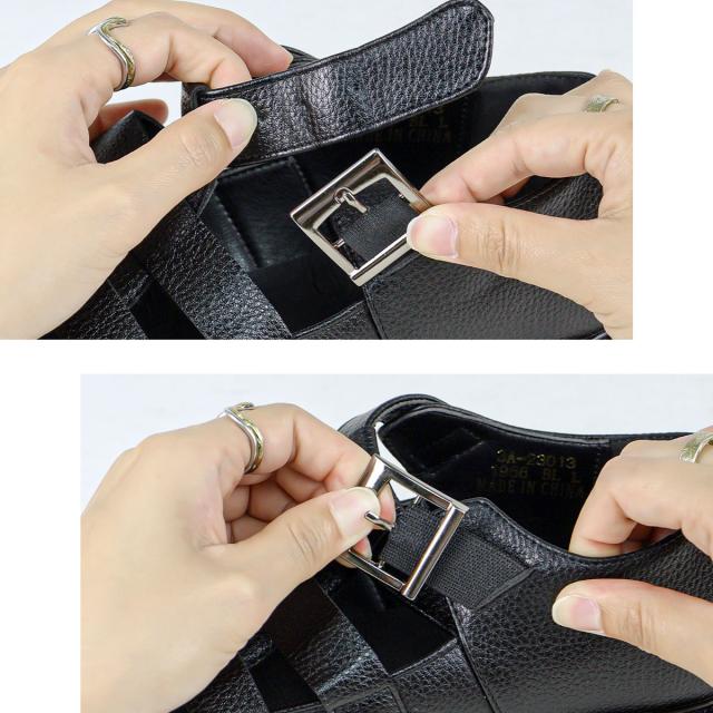 ストラップに付属したゴムにより、毎回ストラップを外さなくても履き口を広げて足入れすることが可能です。