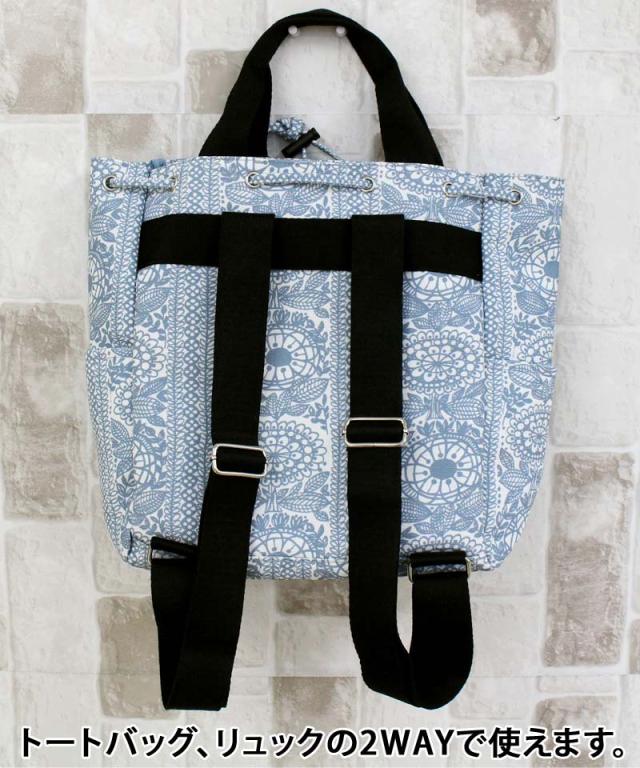 リュック&トートバッグの2WAY仕様。普段のお出掛けやお買い物にも重宝する使い勝手の良いサイズ感。