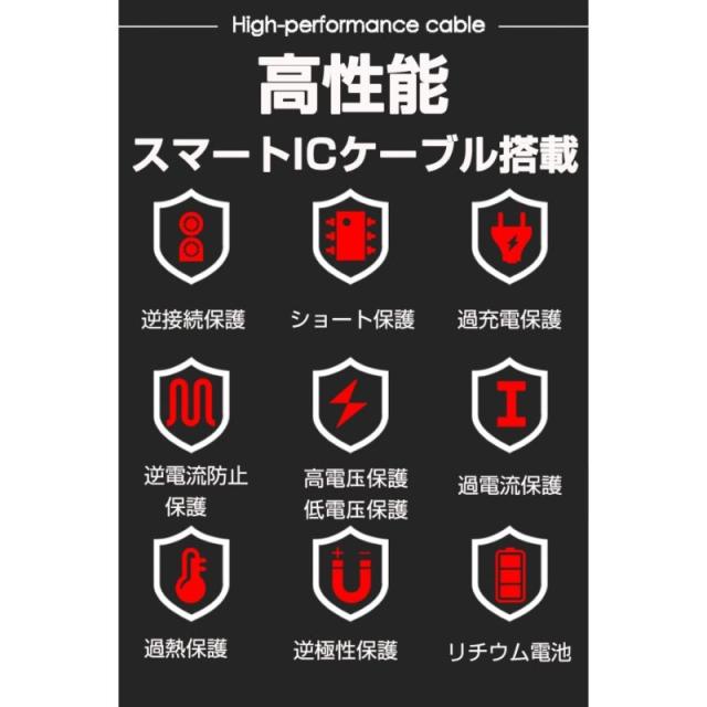 【スーパー保護機能】 スマートジャンプスターターケーブルに8種類の保護機能が設計されており、短絡保護、逆接続保護、過電流保護、過放電保護、逆充電保護、サージ電圧防止などの機能でエンジンスターター本体とカーバッテリーを万全に保護できます。