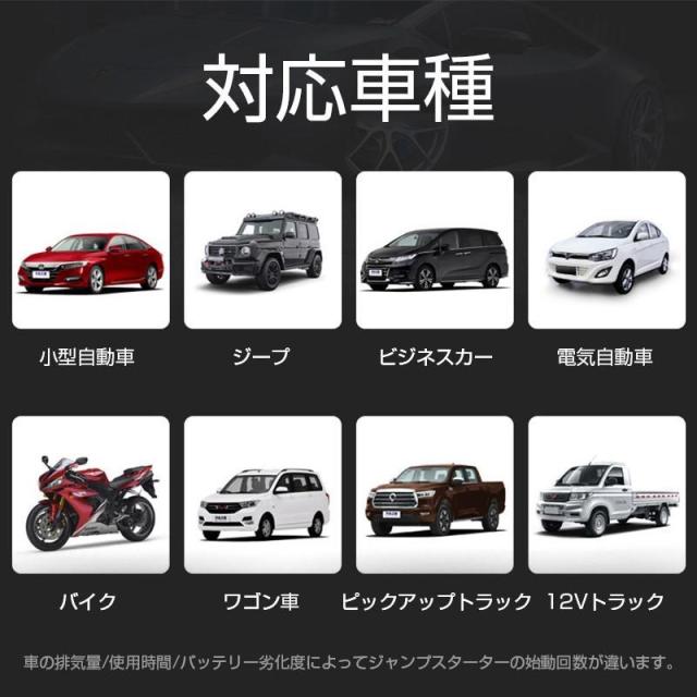 【エンジン始動】 28000mAhの大容量、1000Aのピーク電流で、12Vガソリン全般、12Vディーゼルに全般対応しております、本製品が電量満タンの場合にはエンジンを数回に始動させることができます。車だけではなくオートバイ、モーターボート、軽トラなどの強制始動にも適用です!