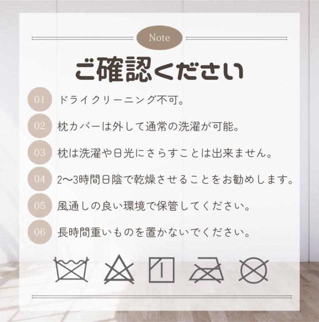 ※枕カバーは通常の洗濯可能です。漂白剤は使用しないでください。