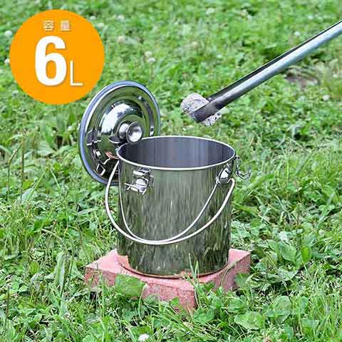 FIELDOOR 火消し壺 火消しつぼ ステンレス 容量6L 直径21cm×21cm 炭袋 火消壺 火消しツボ 火消 薪袋 木炭 炭火 炭入れ 炭処理 難燃 耐熱 保存缶 バケツ 大型 大容量 軽量 焚き火 焚火 アウトドア BBQ キャンプ 後始末 後片付け 1年保証 送料無料