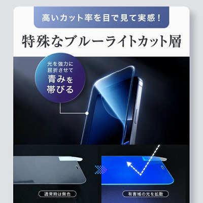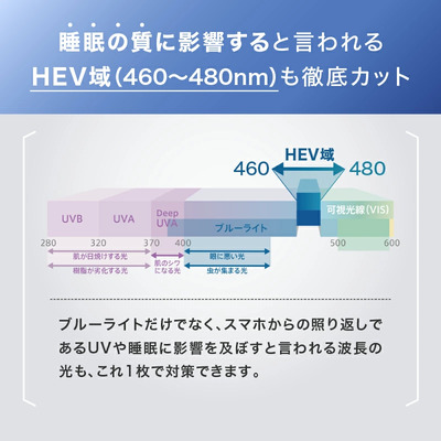 [HEV領域対応ブルーライトカット]スマホから発せられる角膜や水晶体を通過して網膜に到達してしまう「HEV領域」までカットします。