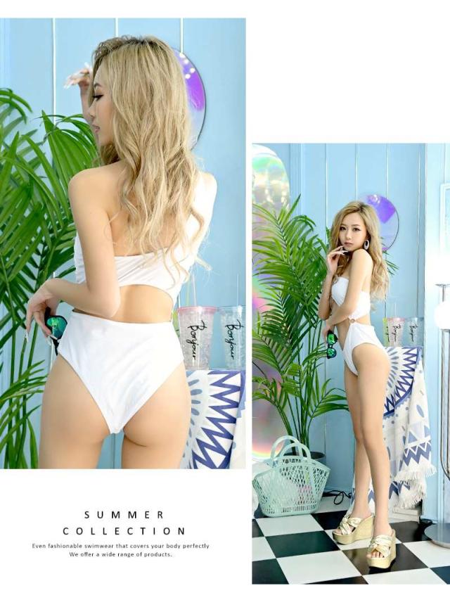 ☆ホワイトシンプル無地のアシンメトリーデザインは女性の色気を醸し出し男を魅了させるレディース水着。