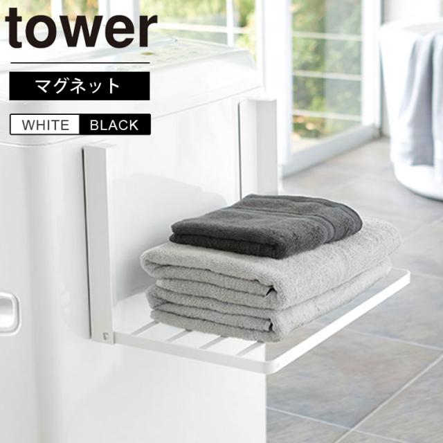 tower 洗濯機横マグネット折りたたみ棚 タワー 山崎実業 タオル置き タオルラック 洗濯機 棚 タオル掛け バスタオル収納 着替え置き場 パジャマ ランドリー 洗面所 ラック デッドスペース シンプル おしゃれ 折りたたみ コンパクト 省スペース 便利 5096 5097 agesugi_snk
