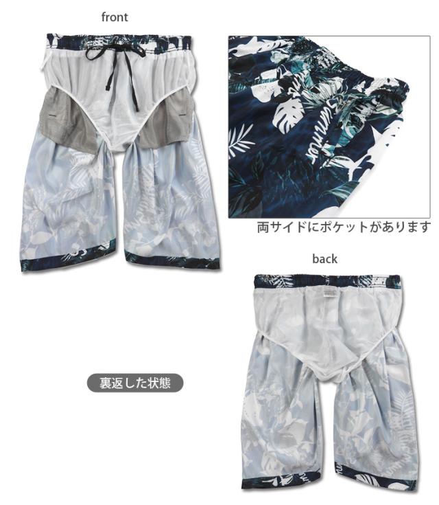 【メール便送料無料】【大きいサイズ】メンズ用サーフパンツ水着 3L 4L 5L スイムウエア 男性 海パン 海水パンツ 花柄 No.sw3402