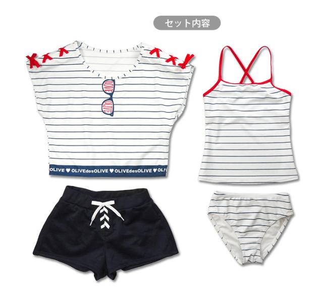 OLIVE des OLIVE キッズ・ジュニア女児用セパレート水着セット 140 150 160 33950377 4点セットアップ 子供 子ども No.sw3357