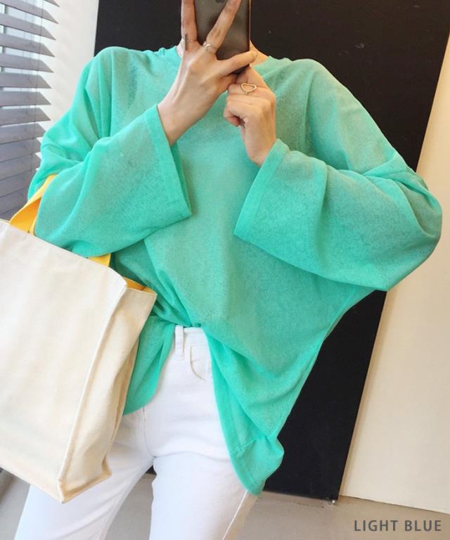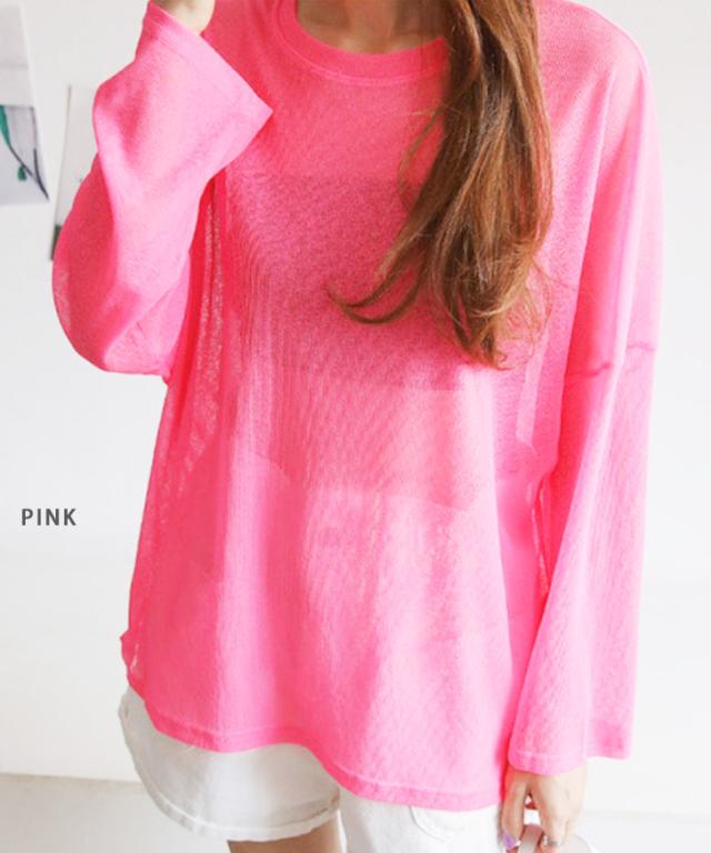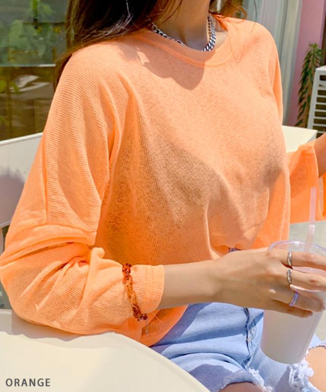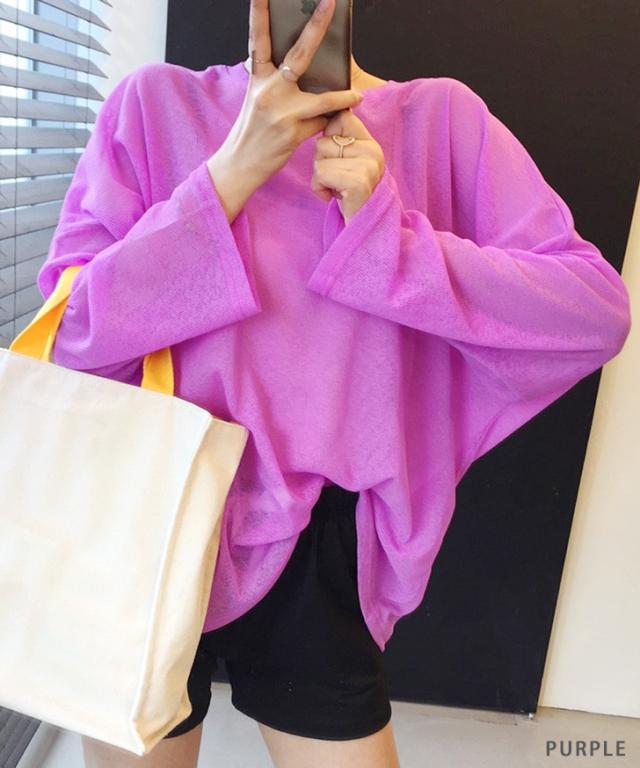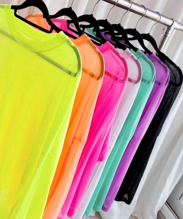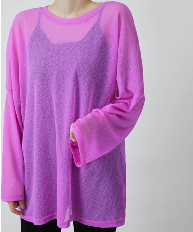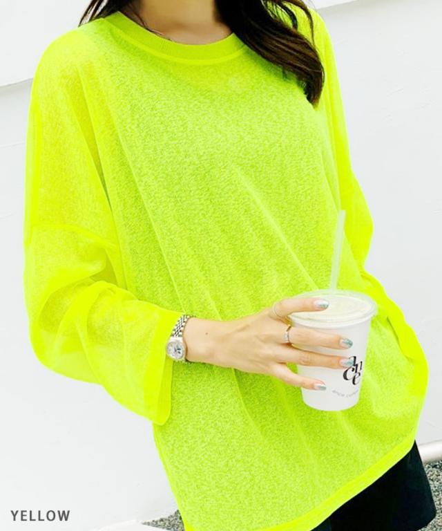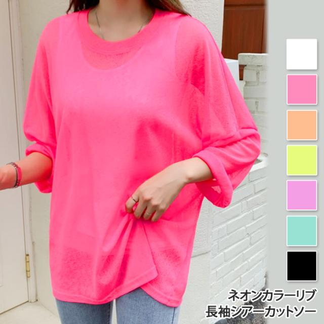 新作 ネオンカラーリブ長袖シアーカットソー レディース トップス カットソー 春 夏 長袖 涼しい 透け 透け感 シアー シースルー ネオンカラー 蛍光色 無地 薄手 レイヤード 重ね着 ロングシーズン 体型カバー