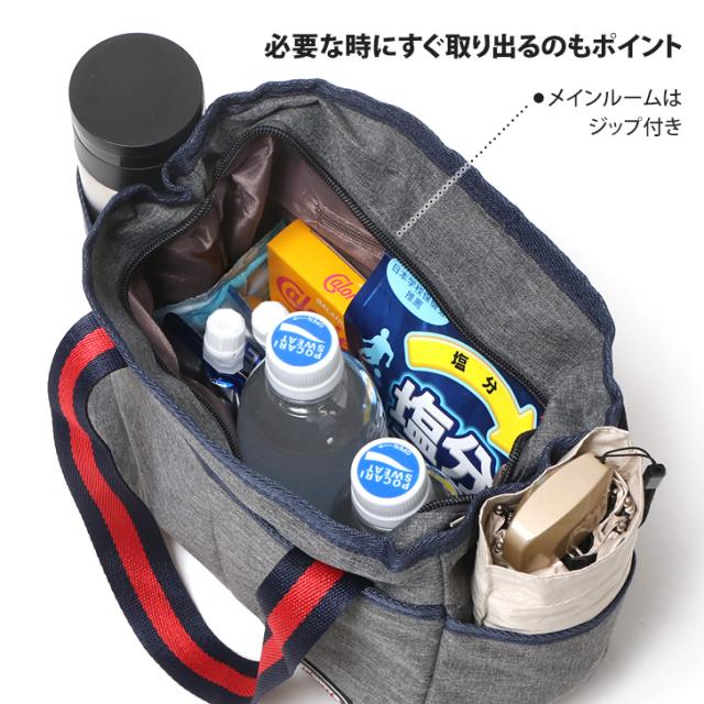 サイドポケットは水筒や折りたたみ傘など、