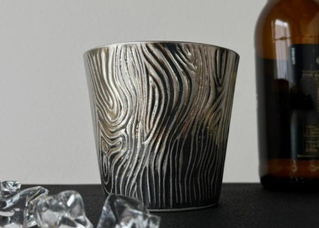 木目(年輪)のような唯一無二なデザイン。そして、光を反射するメタリックな色合い。