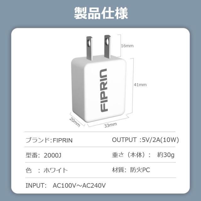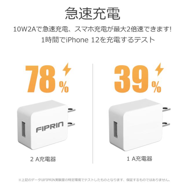 FIPRIN 2000J スマホ充電器 モバイルバッテリー充電器 10W 2A 急速充電用USB ACアダプター iphone android ほぼ全機種対応 充電速度2倍